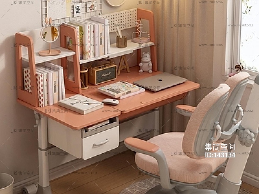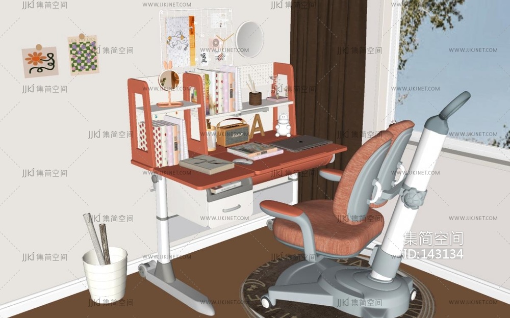北欧儿童书桌椅组合SU模型 su草图模型下载 [模型ID:143134]