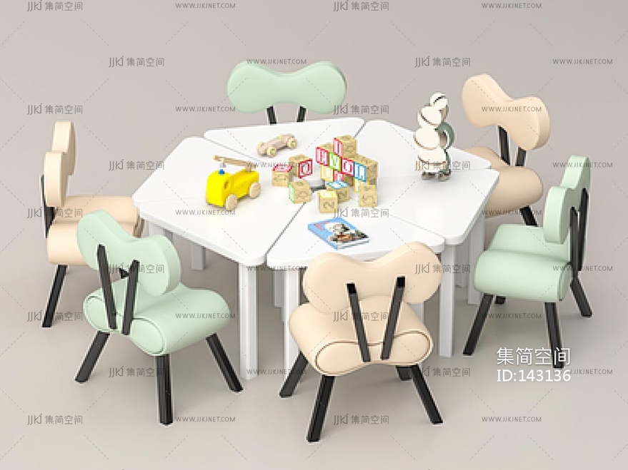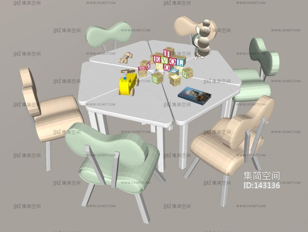 现代儿童休闲桌椅SU模型 su草图模型下载 [模型ID:143136]