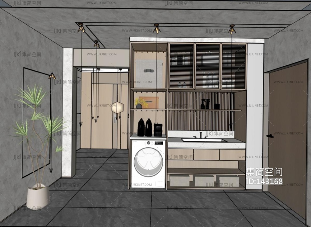 现代家居洗衣房U模型 su草图模型下载 [模型ID:143168]