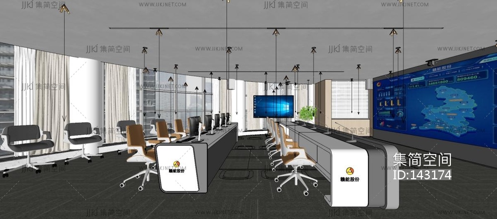 现代简约指挥室,监控室SU模型su草图模型下载