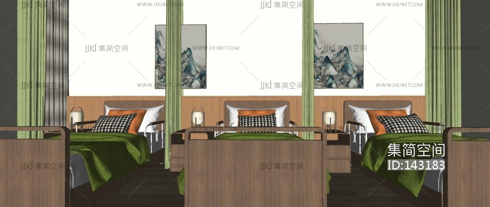 新中式医院病房U模型su草图模型下载