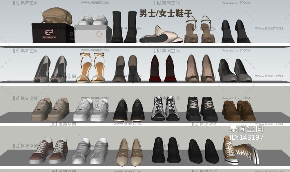 鞋子组合SU模型 su草图模型下载 [模型ID:143197]