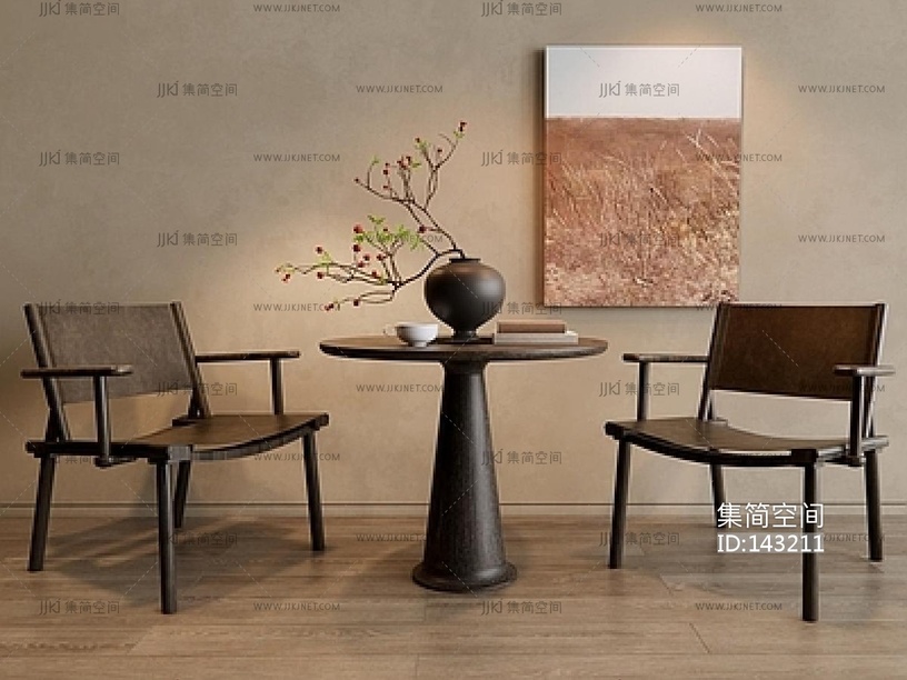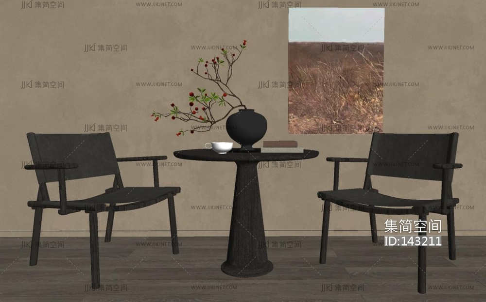 侘寂休闲桌椅组合件SU模型 su草图模型下载 [模型ID:143211]
