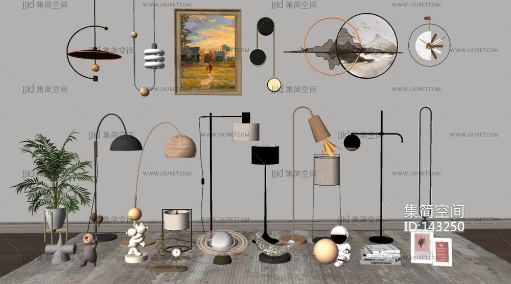 现代灯具组合SU模型 su草图模型下载 [模型ID:143250]