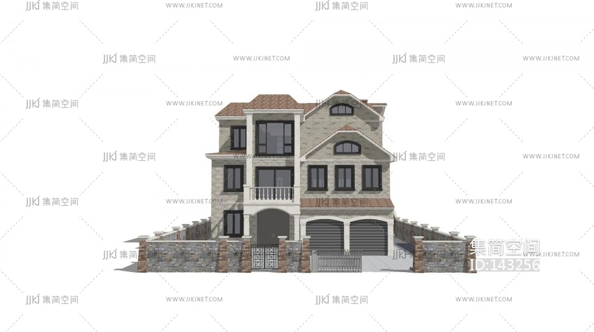 简欧独栋别墅 su草图模型下载 [模型ID:143256]