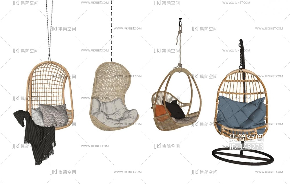 现代吊椅_木吊椅_藤编吊椅SU模型su草图模型下载