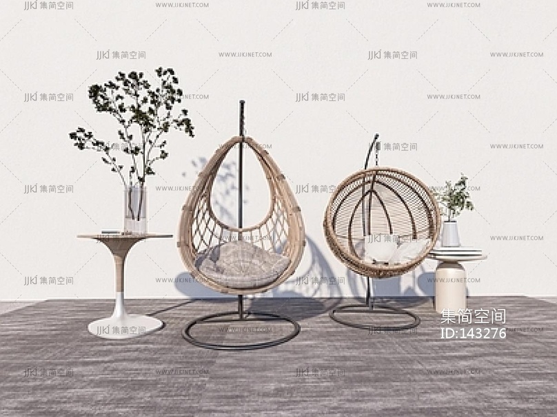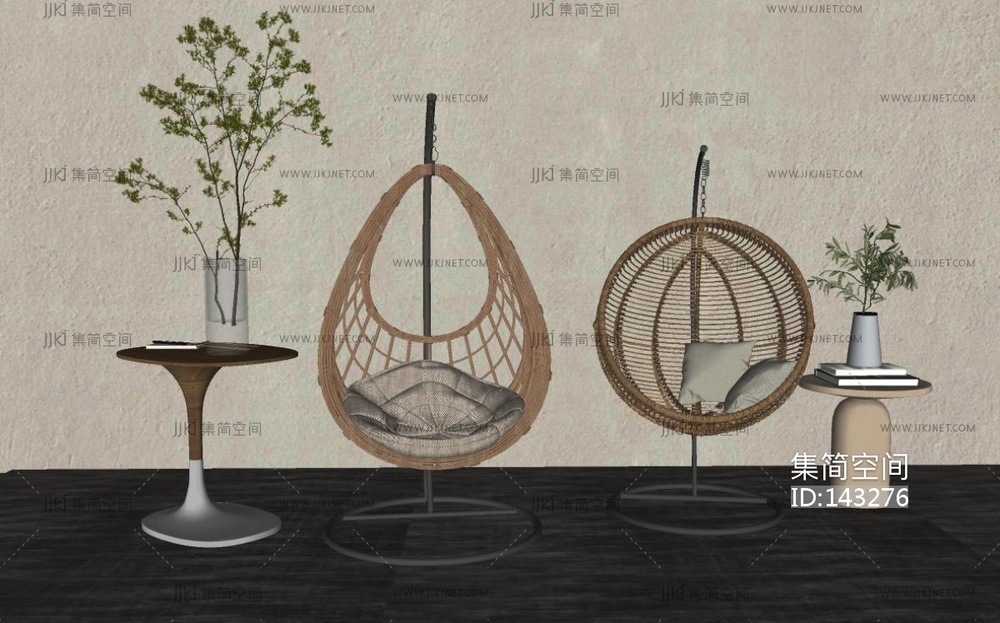 现代藤编吊椅SU模型 su草图模型下载 [模型ID:143276]
