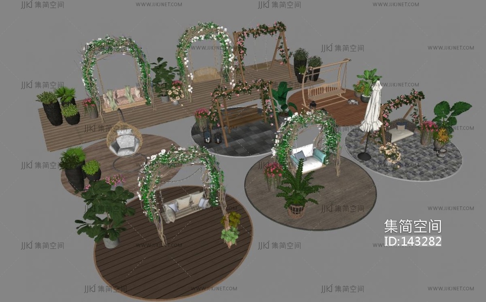 现代户外秋千,景观吊椅SU模型 su草图模型下载 [模型ID:143282]