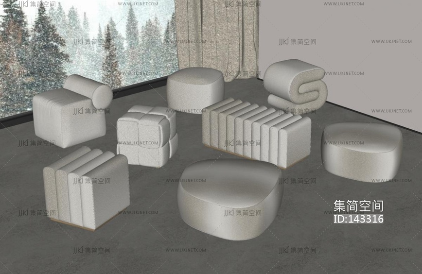 现代凳子组合SU模型 su草图模型下载 [模型ID:143316]