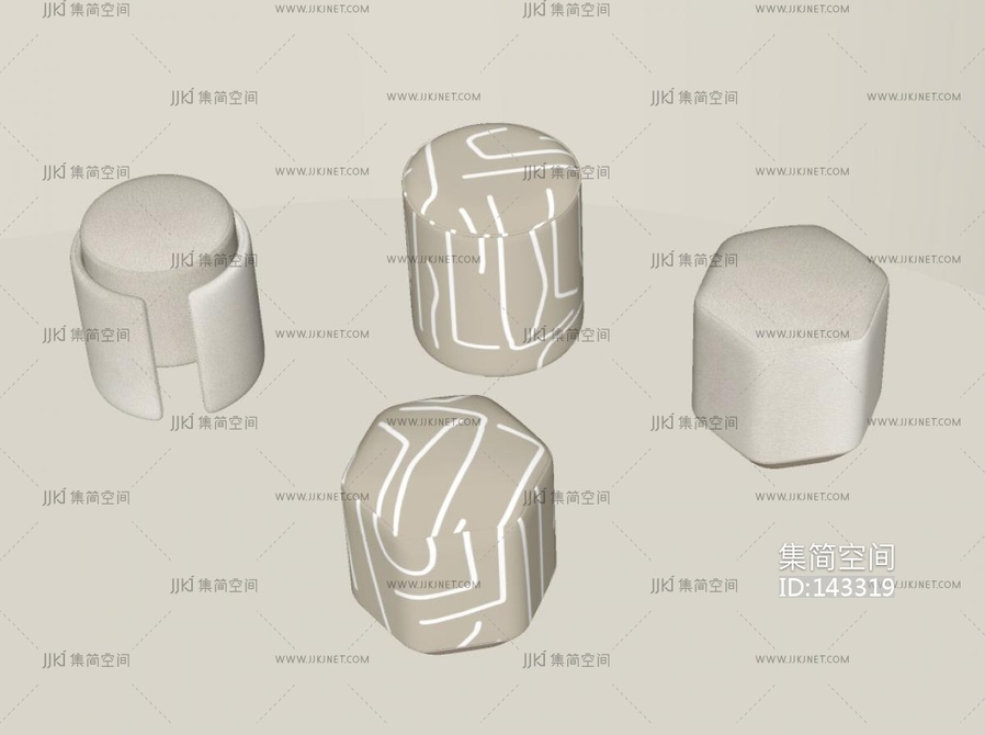 现代奶油风沙发凳组合SU模型 su草图模型下载 [模型ID:143319]