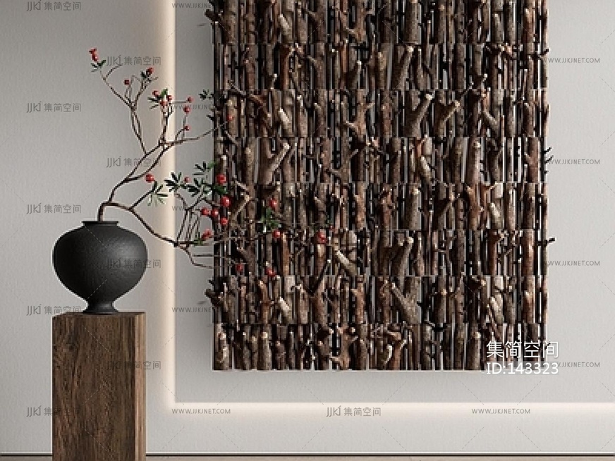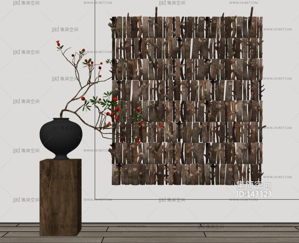 侘寂风枯树枝墙饰挂件SU模型 su草图模型下载 [模型ID:143323]