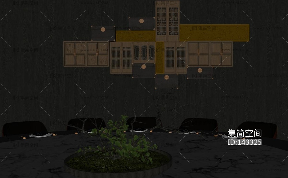 新中式墙饰挂件SU模型 su草图模型下载 [模型ID:143325]