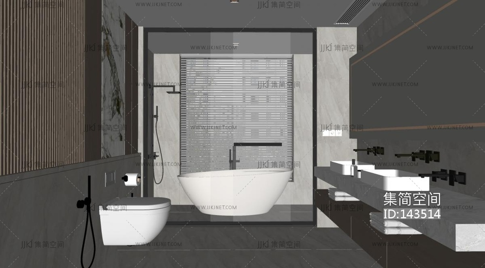 卫生间,外露浴缸,洗手台 su草图模型下载 [模型ID:143514]
