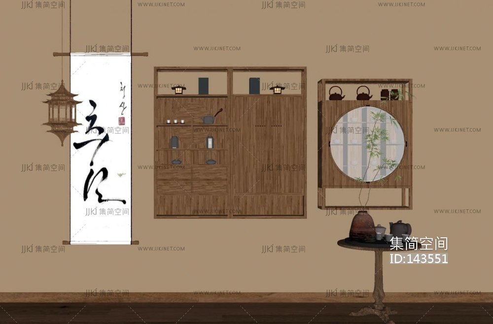 新中式茶柜SU模型 su草图模型下载 [模型ID:143551]