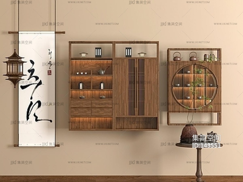 侘寂挂壁式茶柜,装饰柜SU模型su草图模型下载