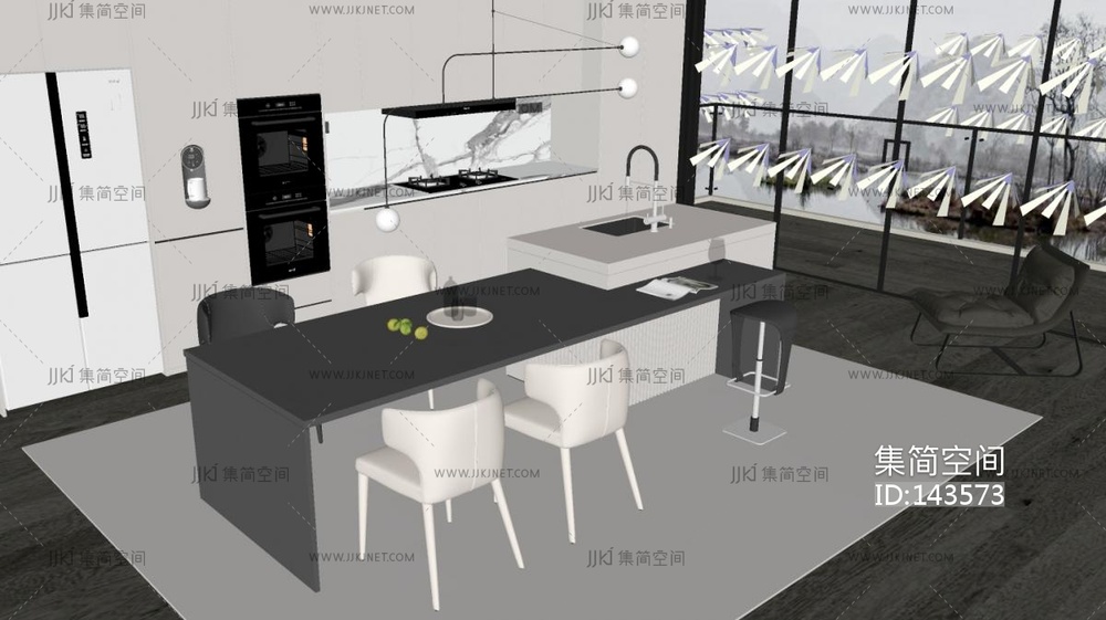 现代岛台餐桌椅组合箱SU模型 su草图模型下载 [模型ID:143573]