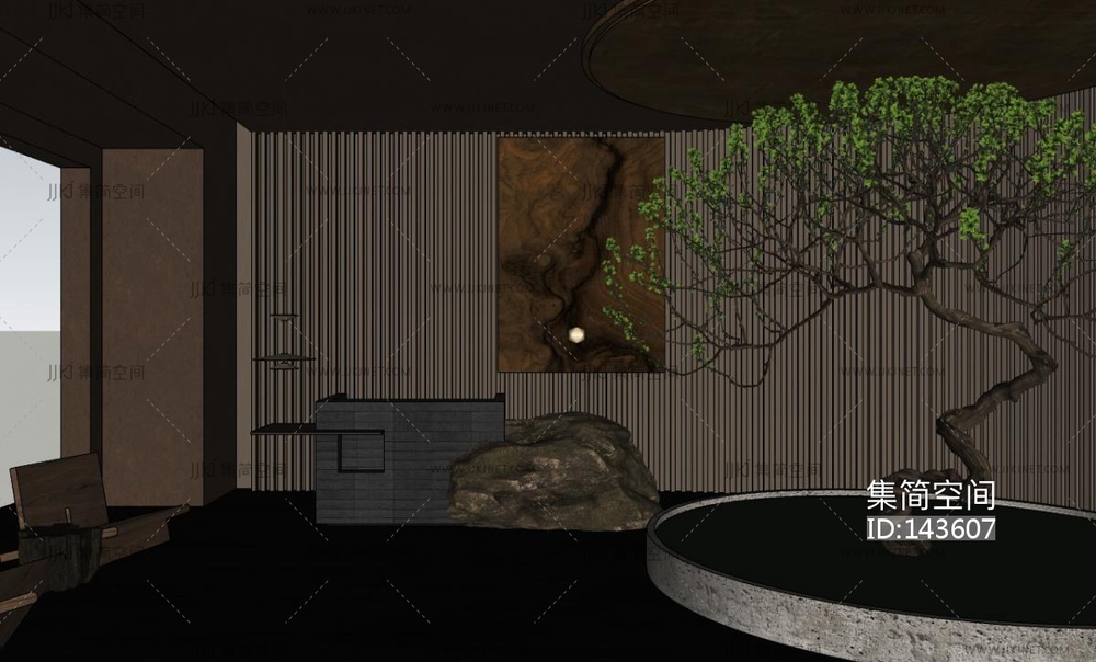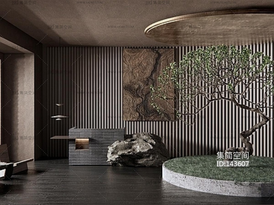 侘寂酒店大堂SU模型 su草图模型下载 [模型ID:143607]