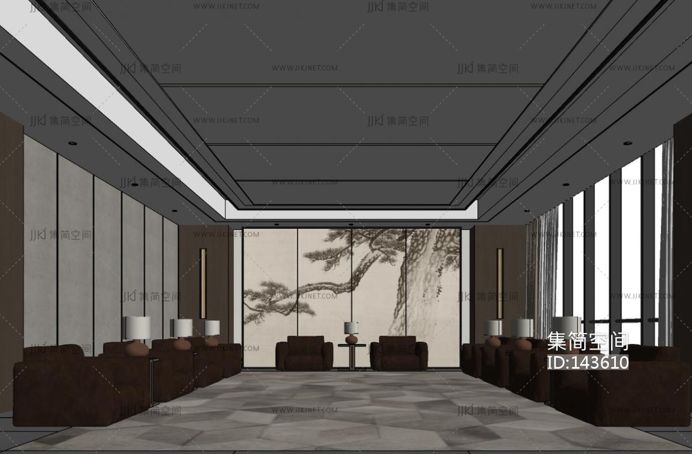 新中式接待室SU模型 su草图模型下载 [模型ID:143610]