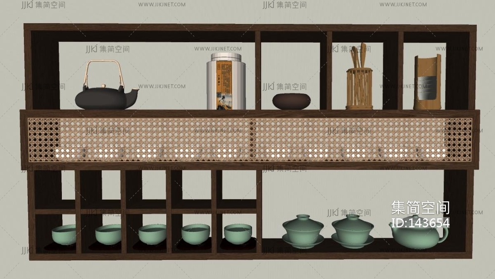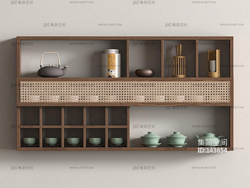 侘寂挂壁式茶柜,装饰柜SU模型su草图模型下载