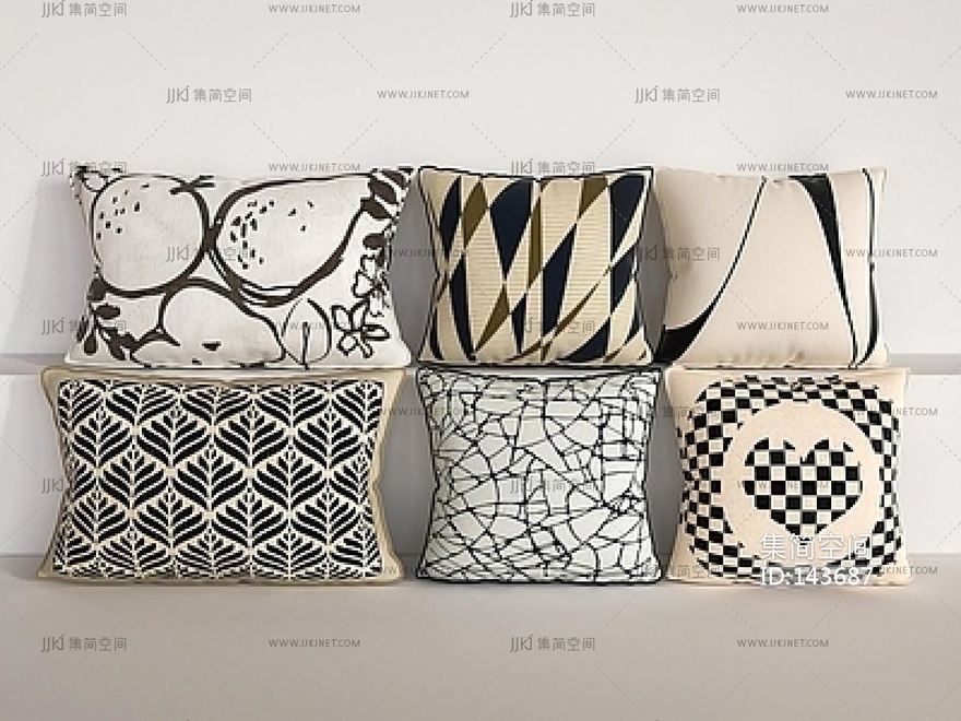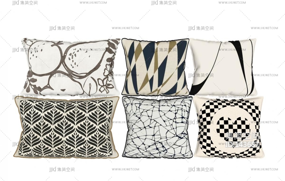 侘寂风原色花纹抱枕SU模型su草图模型下载