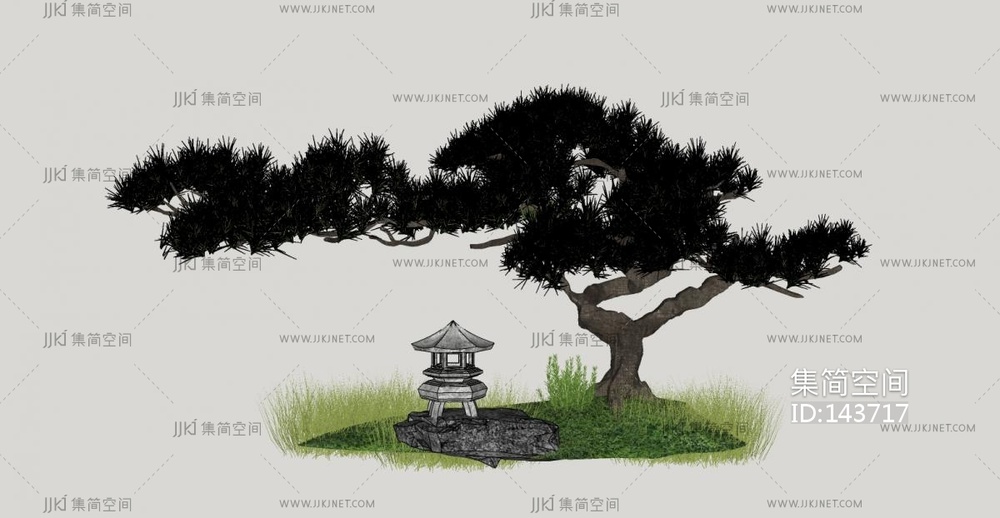 中式景观松树 禅意松树 su草图模型下载 [模型ID:143717]
