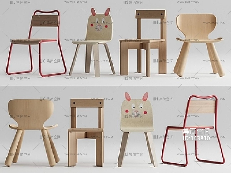 现代儿童椅子组合SU模型 su草图模型下载 [模型ID:143810]
