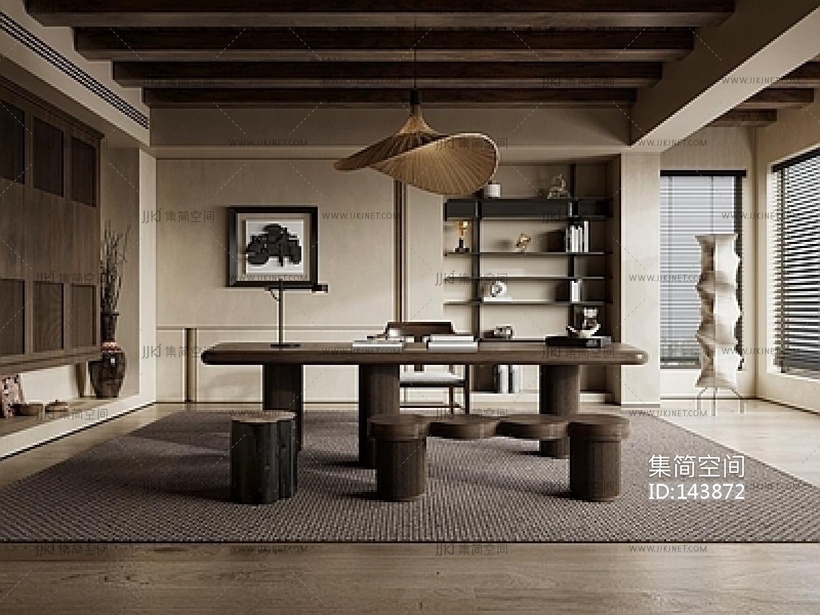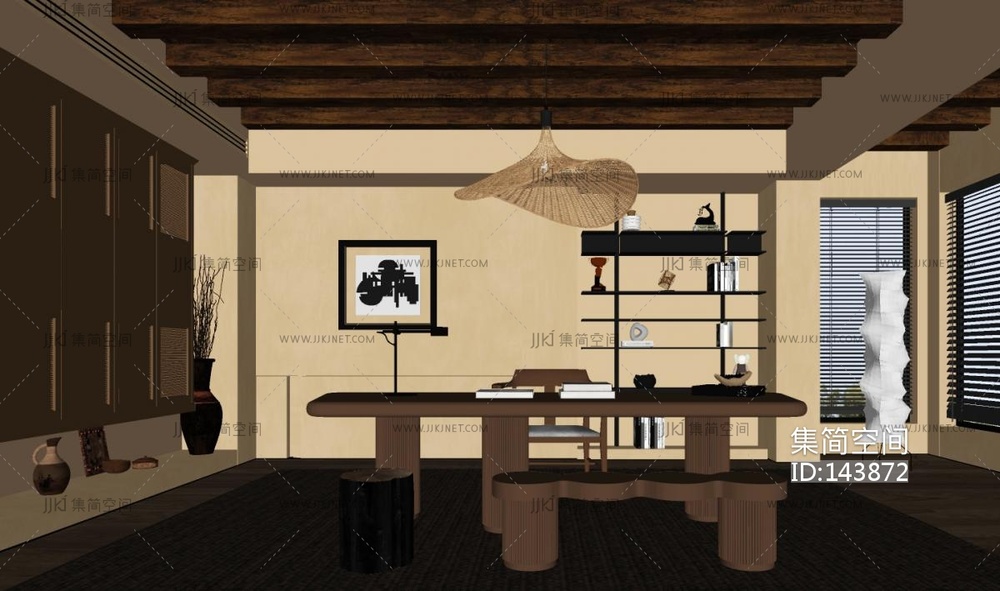 侘寂中古风书房SU模型 su草图模型下载 [模型ID:143872]