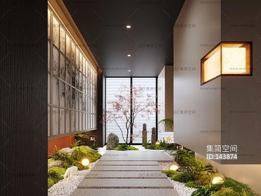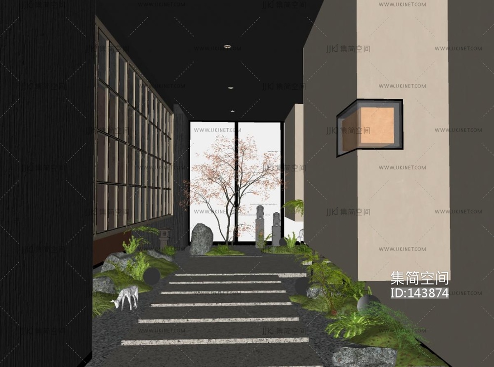 新中式过道走廊SU模型 su草图模型下载 [模型ID:143874]