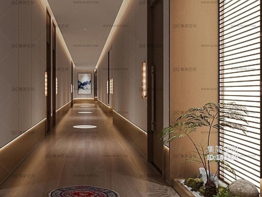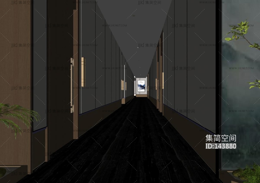 新中式酒店过道SU模型 su草图模型下载 [模型ID:143880]
