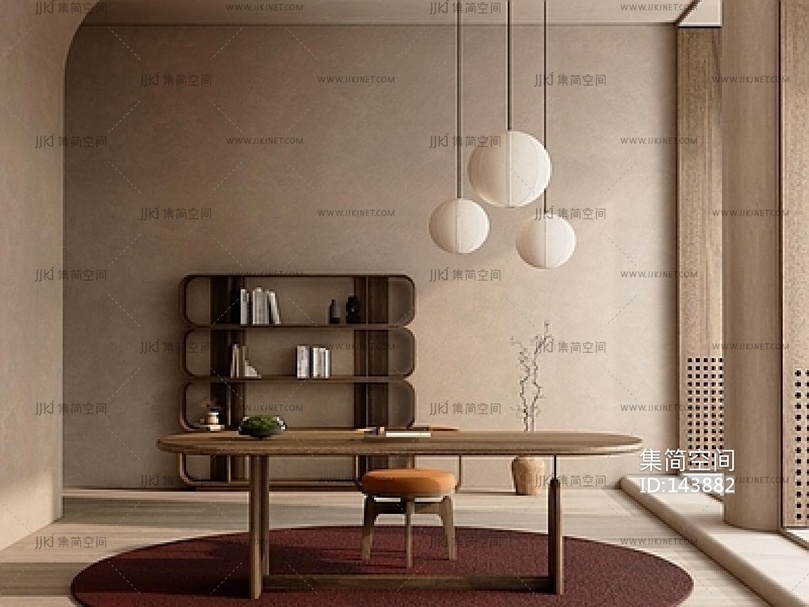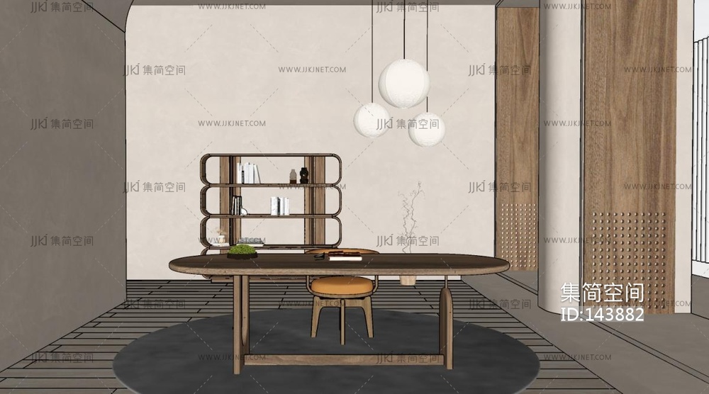 侘寂书房SU模型 su草图模型下载 [模型ID:143882]
