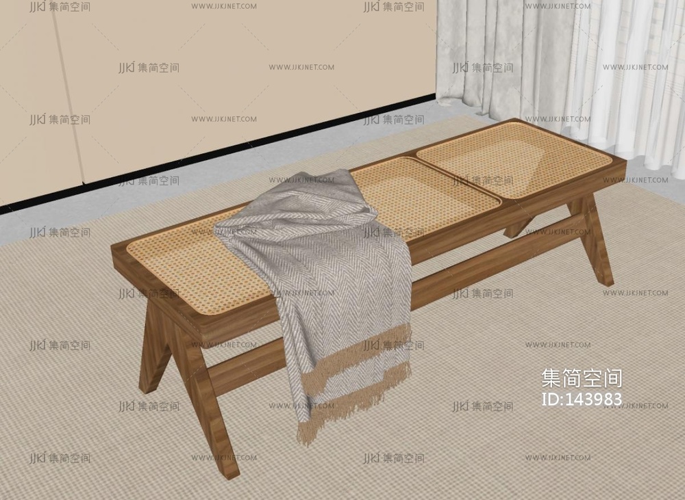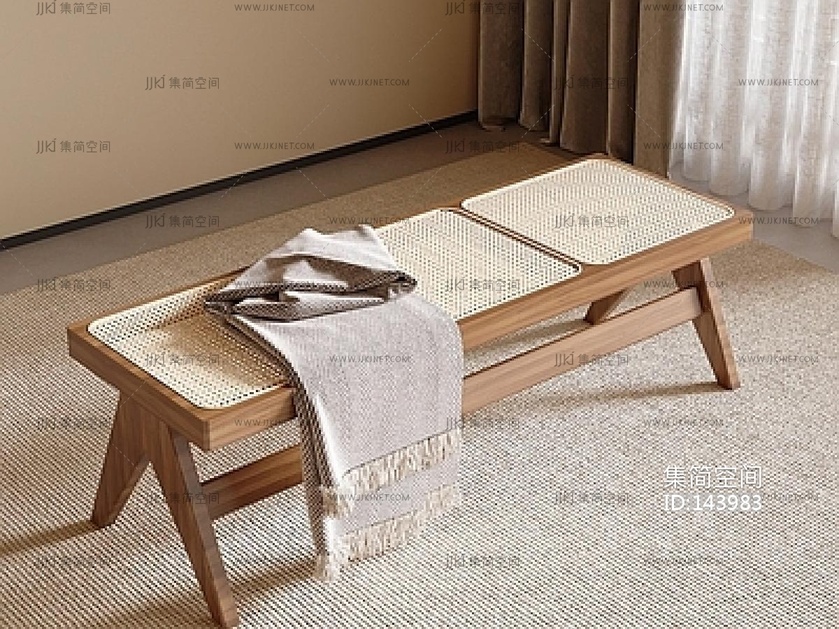 侘寂风床尾凳SU模型 su草图模型下载 [模型ID:143983]