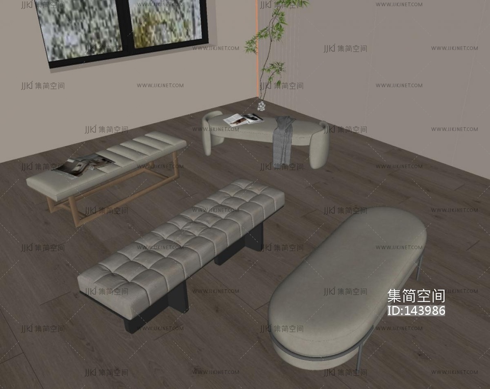 侘寂风床尾凳SU模型su草图模型下载