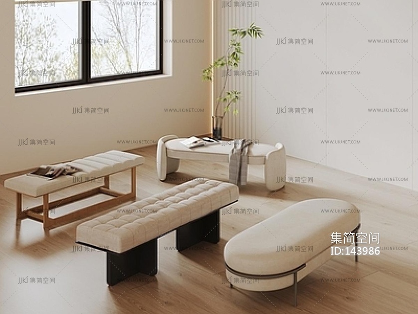 现代意式床尾凳_床尾凳组合_沙发凳_皮革床尾凳_布艺床尾凳_长条凳SU模型su草图模型下载