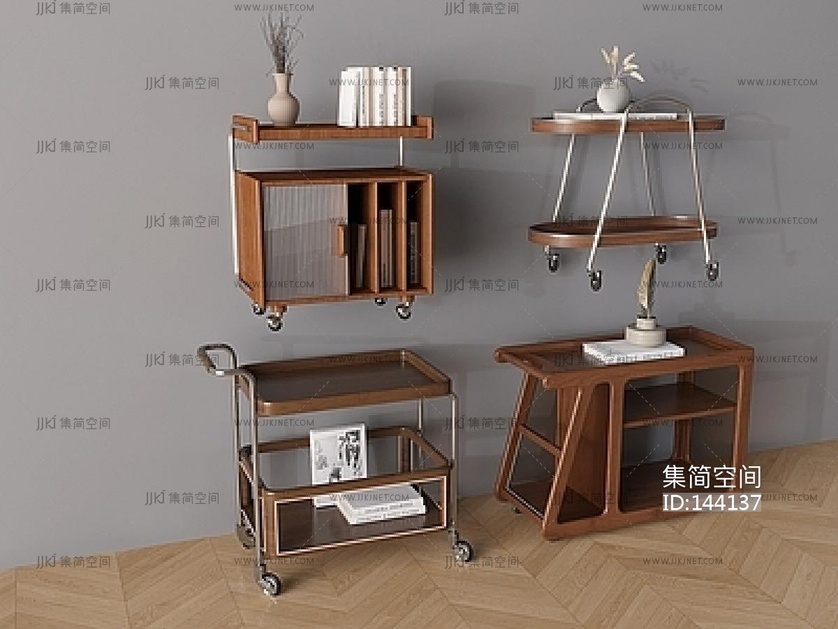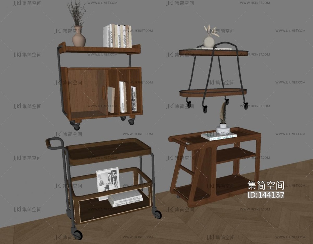 现代中古风小推车,置物架SU模型 su草图模型下载 [模型ID:144137]