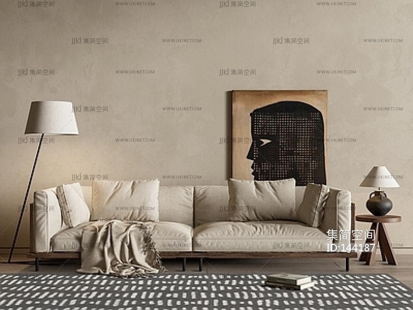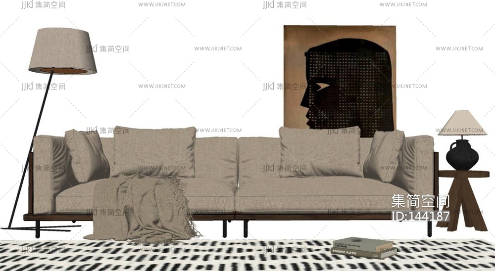 侘寂风多人沙发,落地灯组合SU模型 su草图模型下载 [模型ID:144187]