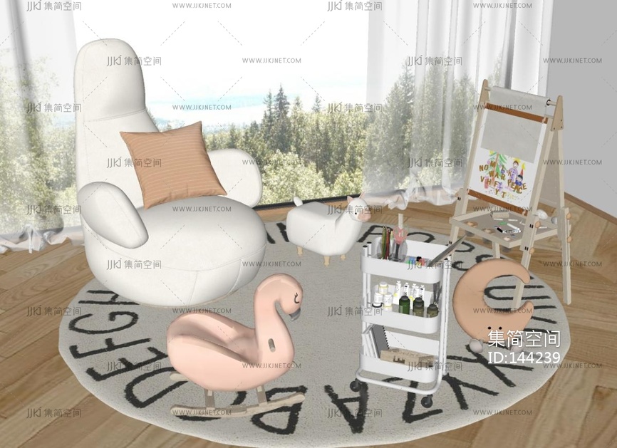 现代儿童单人沙发,儿童画板,儿童玩具SU模型 su草图模型下载 [模型ID:144239]