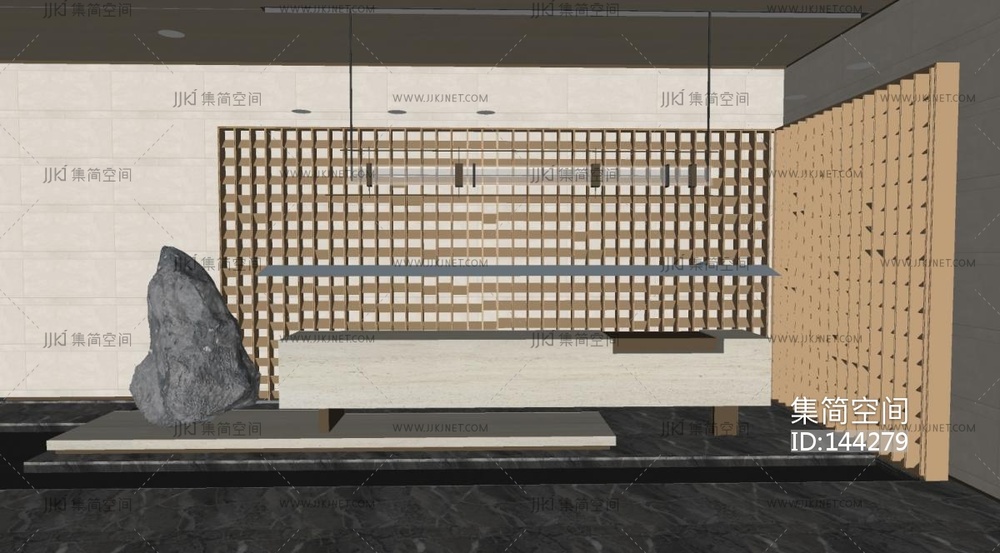 -现代原木售楼处前厅 su草图模型下载 [模型ID:144279]
