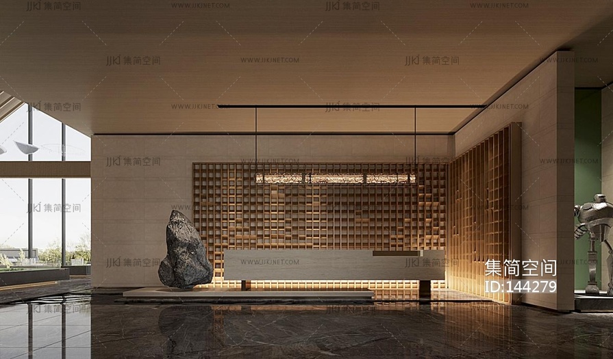 新中式售楼处入口大堂服务太接待台su模型su草图模型下载