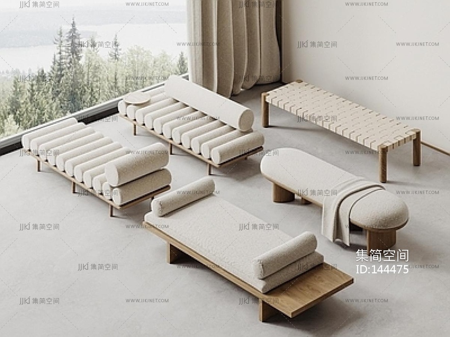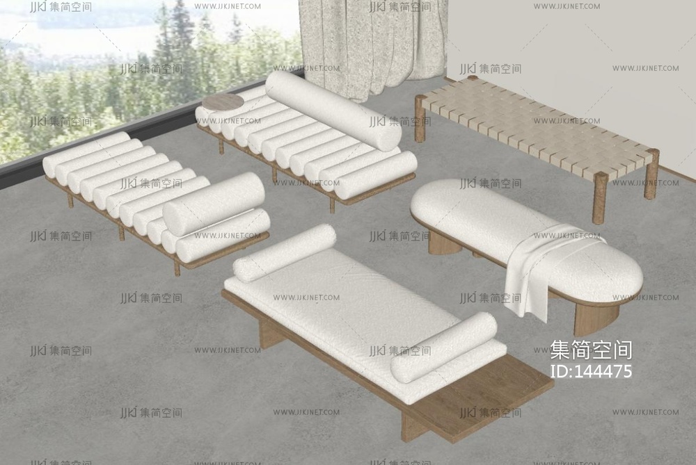 现代床尾凳,沙发凳组合SU模型 su草图模型下载 [模型ID:144475]