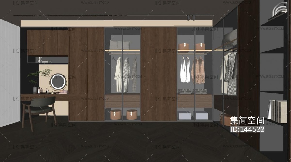 现代中古风衣帽间SU模型 su草图模型下载 [模型ID:144522]