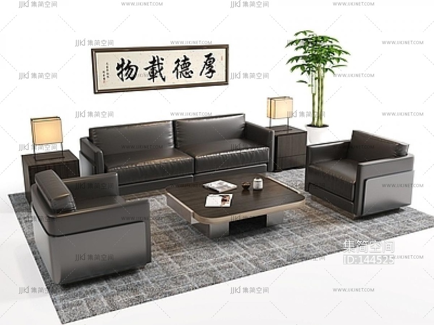 现代办公沙发茶几组合SU模型 su草图模型下载 [模型ID:144525]