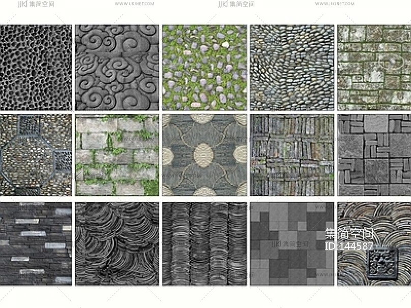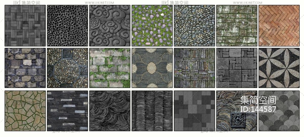 中式铺装,,青石板路,SU模型 su草图模型下载 [模型ID:144587]