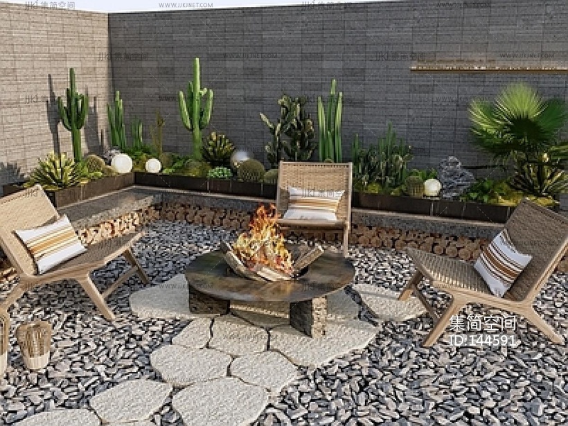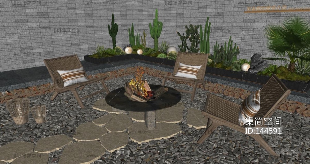 现代庭院小品_室内景观造景SU模型su草图模型下载