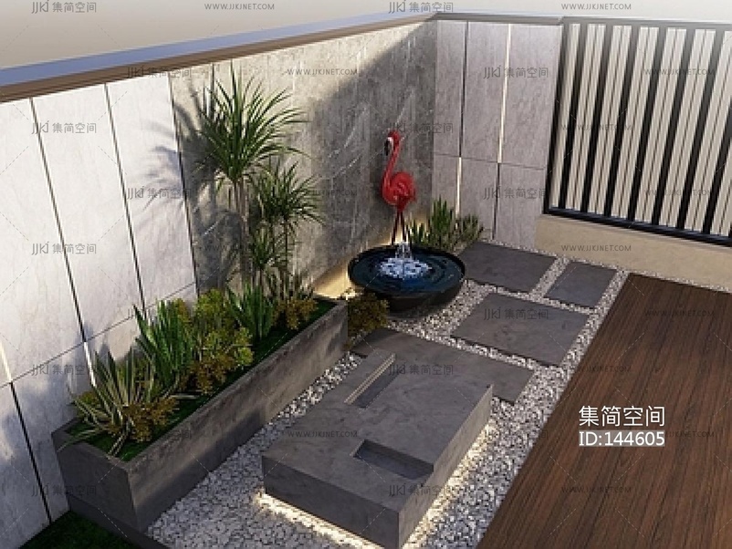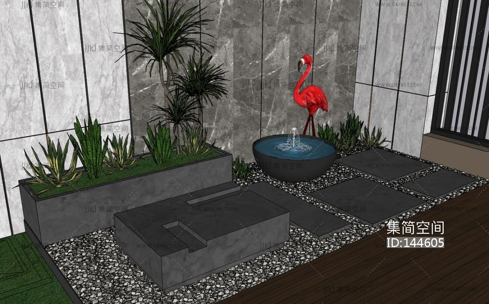 现代庭院小品_室内景观造景SU模型su草图模型下载