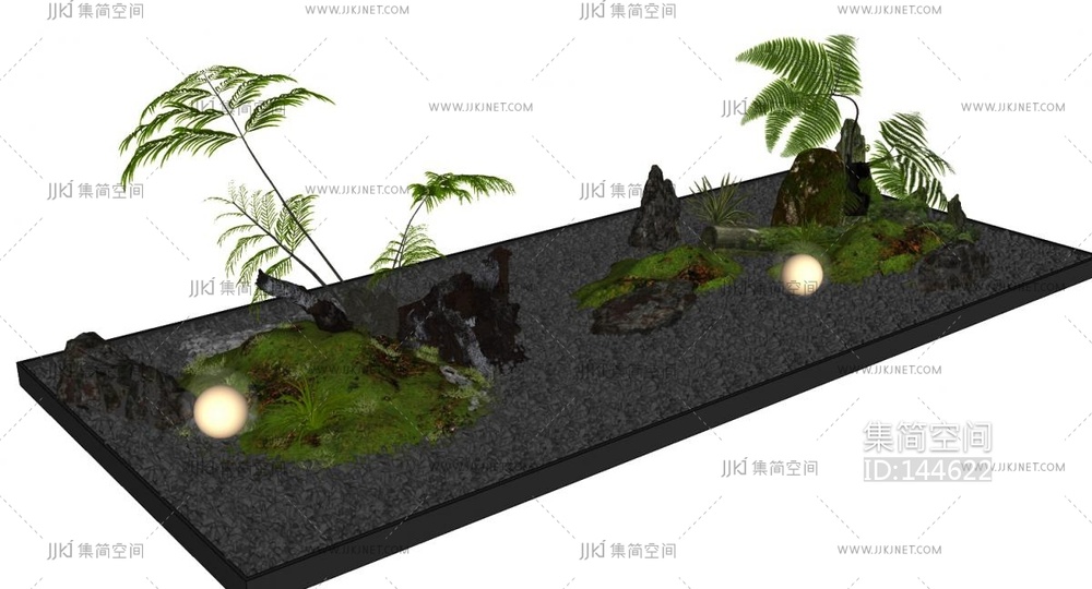 现代庭院小品_室内景观造景SU模型su草图模型下载