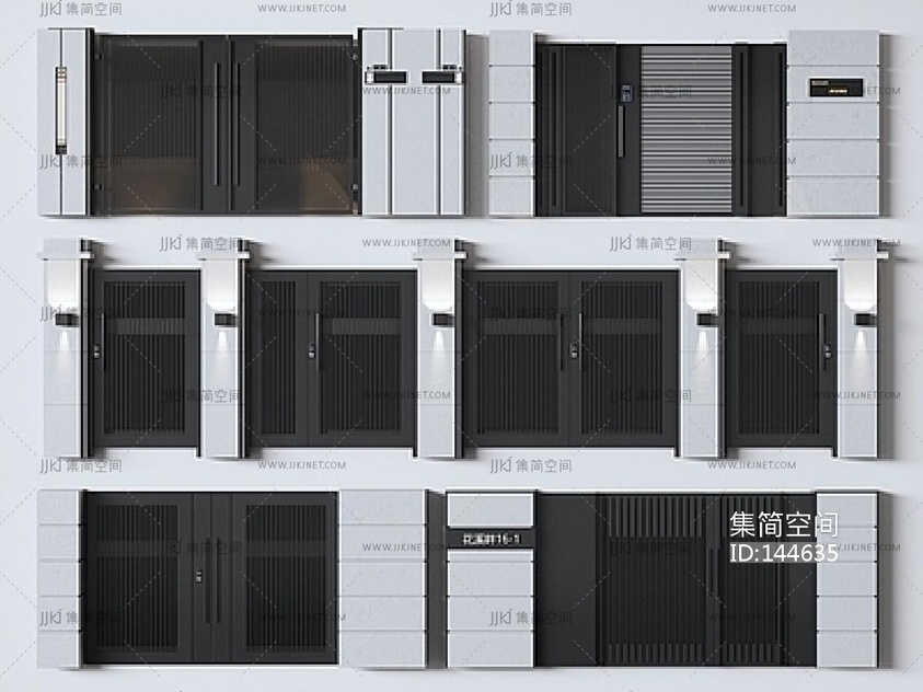 现代别墅庭院门SU模型 su草图模型下载 [模型ID:144635]
