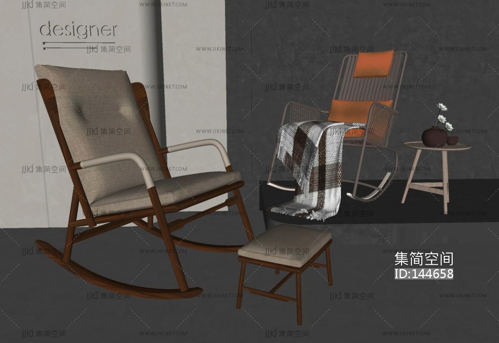 现代中古摇椅_休闲椅SU模型su草图模型下载