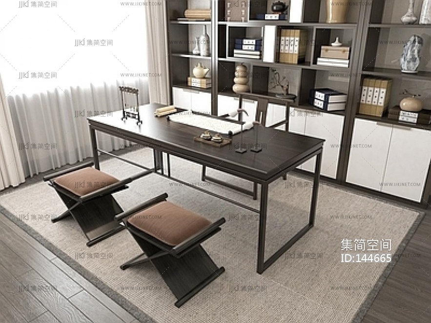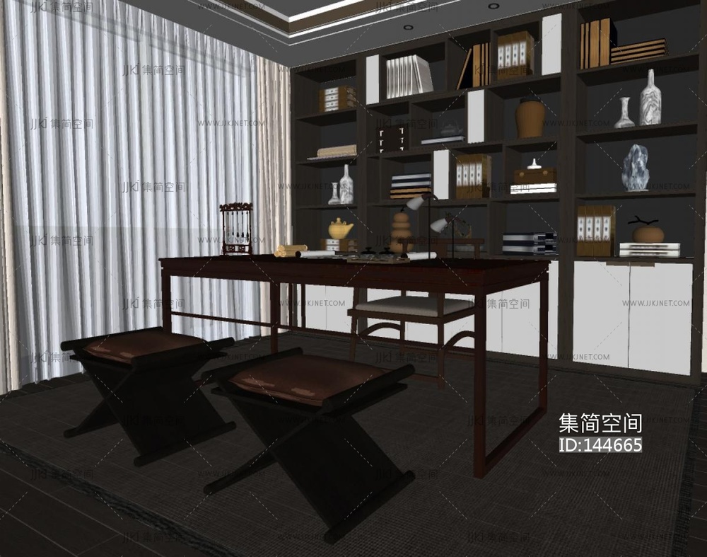 新中式书桌椅组合SU模型 su草图模型下载 [模型ID:144665]