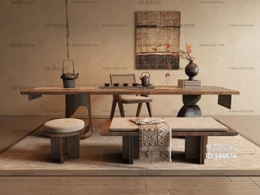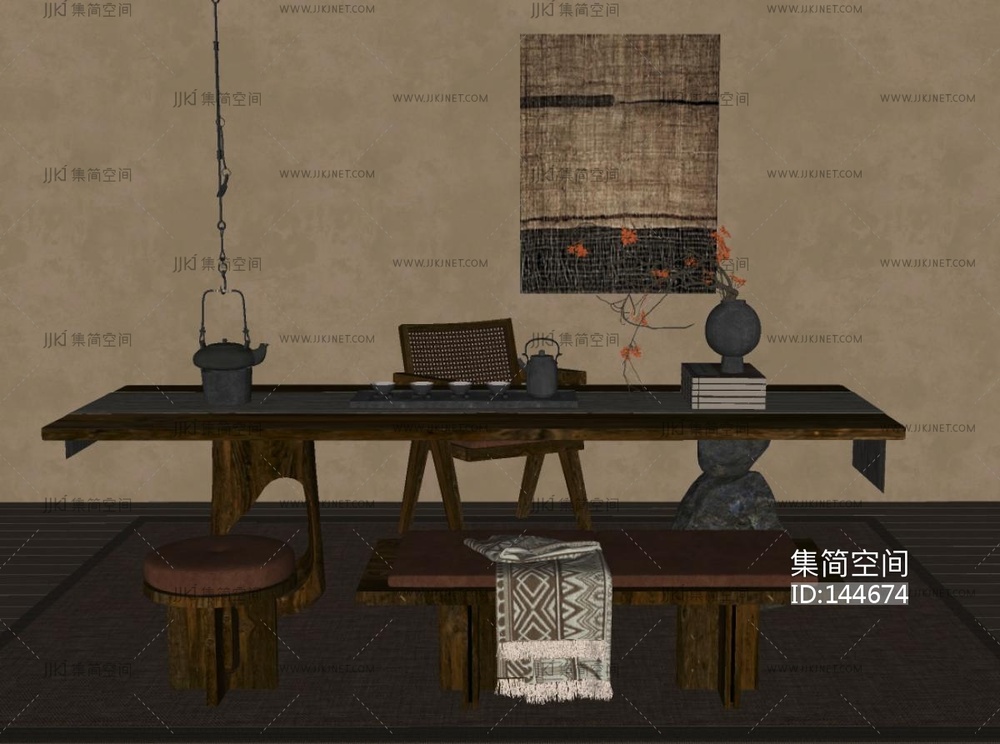 侘寂茶桌椅SU模型 su草图模型下载 [模型ID:144674]