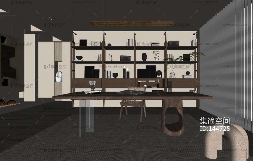 侘寂中古书房SU模型 su草图模型下载 [模型ID:144725]